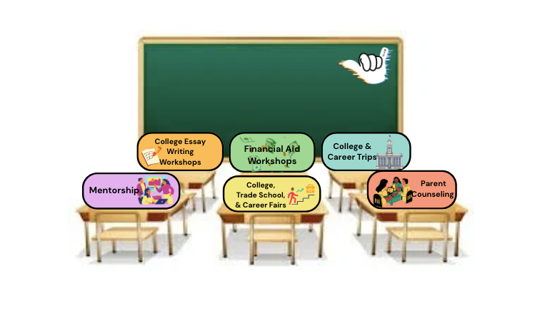 - Financial aid and scholarship assistance (FAFSA and TAP completion)
